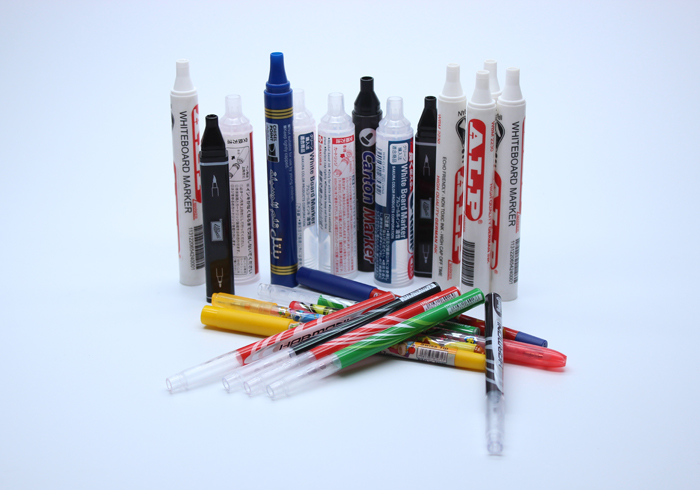 文具、玩具類の熱転寫ラベルは「ABS、AS、PP、PMMA、PCなどの材質(zhì)のボールペン、シャープペンシル、修正テープ、定規(guī)、文具用品に広く応用されている」。